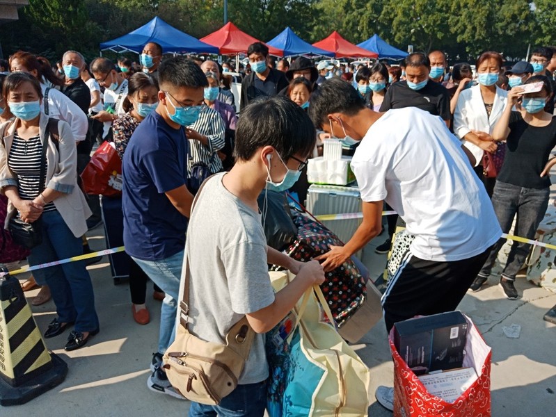 学生和家长们在学校西门排队等待,新生在志愿者的引导下,经相关专业检测进入校园。经随机采访了解,本届大一新生非常期待新的大学校园生活,要发奋学习,让这里成为自己人生旅途的一个崭新的起点。