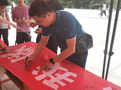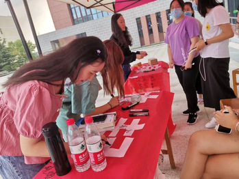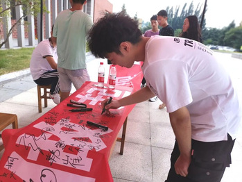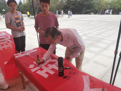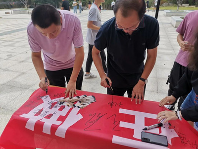 活动开始前,策划人员精心设计宣传海报、节粮爱粮书签和宣传条幅。橱窗里的海报和道路主干道两侧悬挂的条幅格外醒目,在餐厅门口宣传活动现场同学们积极签名,签名同学获赠一枚节粮爱粮书签。