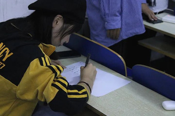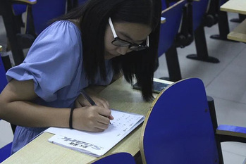 在接下来的个人比赛中,同学们利用自身知识储备,将简单的汉字合二为一,在规定时间内奋笔疾书,写一份满意的答卷。