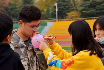 活动由校心理健康服务部主持,通过进行多种户外游戏让同学们释放压力,其中游戏有:扎气球游戏、情有千千结、看谁反应快。在扎气球游戏中,同学们在气球上写下自己的烦恼然后将气球扎爆,同学们团结一致,互相加油打气,最终赢得胜利。在情有千千结游戏中,同学们运用智慧和灵活完成游戏的同时,也寓意着打开心结,用快乐拥抱未来。活动的最后,校心理健康服务部为游戏中胜出的同学颁发奖品,获奖同学脸颊上洋溢着笑容,如冬日的暖阳一般温暖灿烂。