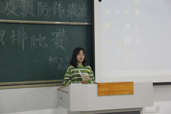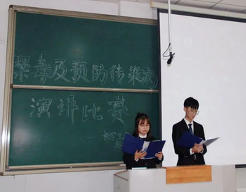 经过激烈的角逐后,选拔出了成绩优异者进入决赛,进行禁毒演讲。在本次演讲现场活动中演讲者们个个精神饱满、仪态端正,围绕“禁毒及预防传染病”的主题,他们从多个角度出发阐明自己的观点,讲述了禁毒和预防传染病的重要性。演讲者们呼吁每一位同学从自身做起,积极加入到全民抵制毒品的行列中。演讲者们慷慨激昂、铿锵有力的演讲,深深地打动了在场的每一位观众,赢得了评委的一致好评。