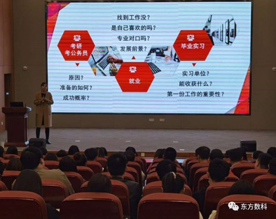 接着,谢蕙老师主要从大家即将面临的毕业实习、就业、研究生和公务员考试三方面展开指导和动员,建议大家先就业再择业,强调了第一份工作对大家的重要性,鼓励大家选择大型企业把握实习机会,并向大家介绍了学院“成功就业项目”,动员大家打起精神为自己的选择努力拼搏,给自己的大学生涯画上一个圆满的句号。