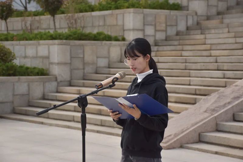 教师代表王一博老师在发言中表示,青年学生要学习烈士精神,为祖国发展贡献出自己的力量。