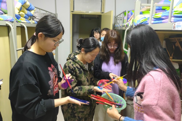 3月29、30日,国际商学院举办以“手拉手心连心”为主题的活动。整个活动分为“同心协力”和“手拉手”两个环节。在“同心协力”环节中,宿舍成员共同在纸上画出六个代表宿舍六位成员的吉祥物;在“手拉手”环节,心理健康服务部成员邀请各宿舍每个成员在画纸上留下自己的手印。本次活动有效的增进了宿舍成员的凝聚力,也使同学们感受到了校园文化生活的魅力。