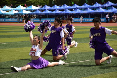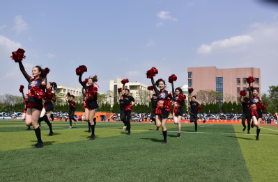 在激烈的比赛之余还有各二级学院带来的精彩绝伦的啦啦操表演。啦啦操成员们从手型到队形,从舞步到风格,他们敢于尝试敢于创新,舞动的花球,劲爆的舞蹈,默契的配合,演绎着青春释放着激情,下面让我们一起来欣赏一下吧!