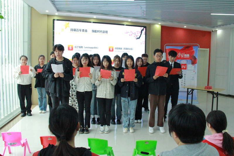 表演在集体朗诵《五四,五四》中结束,在那坚毅的眼神、高亢的声音、滚烫的热泪中,我们仿佛看到被铁蹄蹂躏、伤痕累累的中国在呻吟,危亡关头,无数青年不顾生死、奋起反抗,最终刺破黑暗,迎来和平与美好!随后,我校青年代表又参与了凤凰社区“拼贴诗苑”等活动,活动在愉悦的气氛中结束。此次主题团日活动中,同学们积极参与、精心准备、热情演绎,展示了我校青年学生风采,彰显了学校魅力。正如习近平总书记所说“一代人有一代人的长征,一代人有一代人的担当”。新时代是追梦者的时代,也是广大青年成就梦想的时代。当代中国青年生逢盛世,肩负重任,希望广大青年学生把个人理想追求融入社会主义现代化事业,不负韶华、不负时代、不负青春,在强国建设、民族复兴的新征程上贡献青春力量。