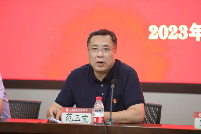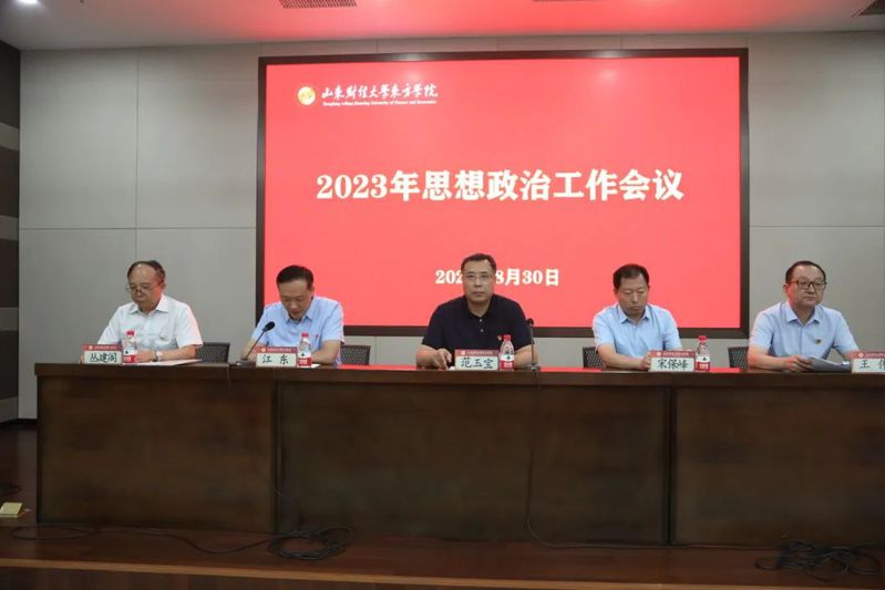 为深入学习贯彻习近平新时代中国特色社会主义思想,安排部署学校当前和今后一个时期的思想政治工作,8月30日,hjc222黄金城官网在沂蒙精神教育培训基地召开2023年思想政治工作会议。党委书记范玉宝全面总结学校近年来思想政治工作,就新形势下加强和改进思想政治工作提出具体要求。党委副书记、常务副院长宋保峰出席会议。党委委员、办公室主任江东主持会议。党委委员、学生工作处处长王伟,全体中层干部、学工人员和思政课老师参加会议。