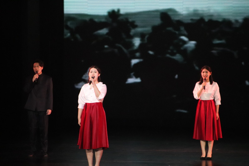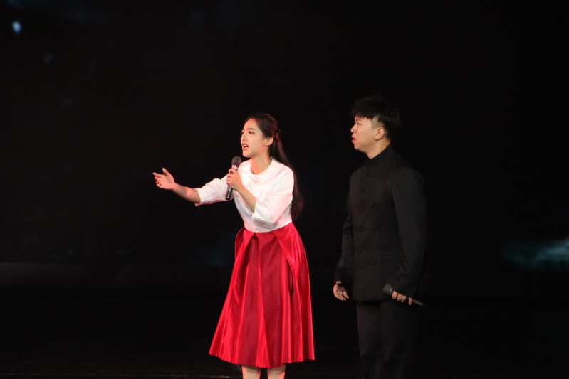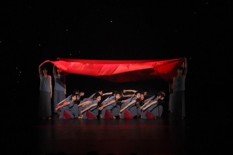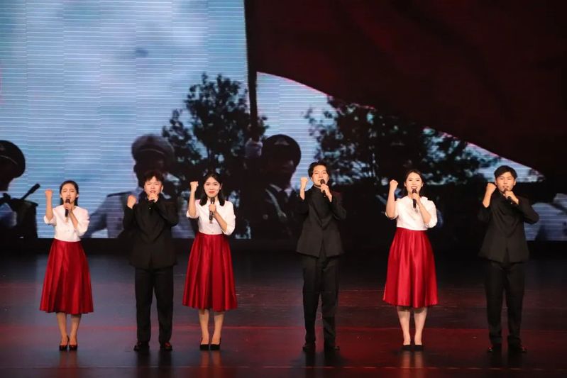 红,是信仰和力量的象征,承载着亿万中华儿女的拼搏和骄傲。如果信念有颜色,那一定是中国红!我校学子的舞蹈《我心中的红》讲述了在革命战争年代,一群不怕死不怕苦的先辈,在信仰的指引下,带领人民群众走过战火硝烟,走过赤地千里,走过探索迷茫,最终与人民战胜苦难的故事。聚光灯下,干练的舞姿整齐划一,那一面大旗随着风和队员们的动作飘扬、向上鼓起,使舞台笼罩在红色光芒之下,一种信仰的力量充斥全场,观众的心随着音乐跌宕起伏,让人沉醉其中。于红旗下成长,在盛世里眺望,先辈的血汗永志不忘,巍巍山河永昌,祖国繁荣富强!