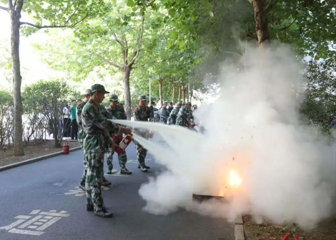 讲解结束后,现场新生代表在专业人员指导下进行了干粉灭火器的实际操作演示。