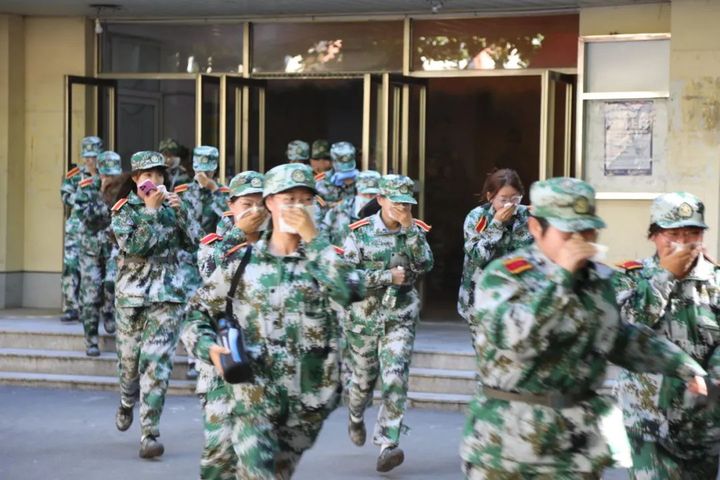 警报拉响,楼内学生用湿毛巾轻捂口鼻,躬腰,俯首,低行,有秩序地撤出宿舍楼并抵达了安全地点。同学们听从指挥,积极配合,密切协作;老师们认真组织,整个疏散过程快速、安全、有序,消防演练达到预期效果。