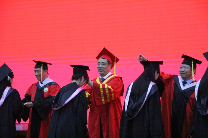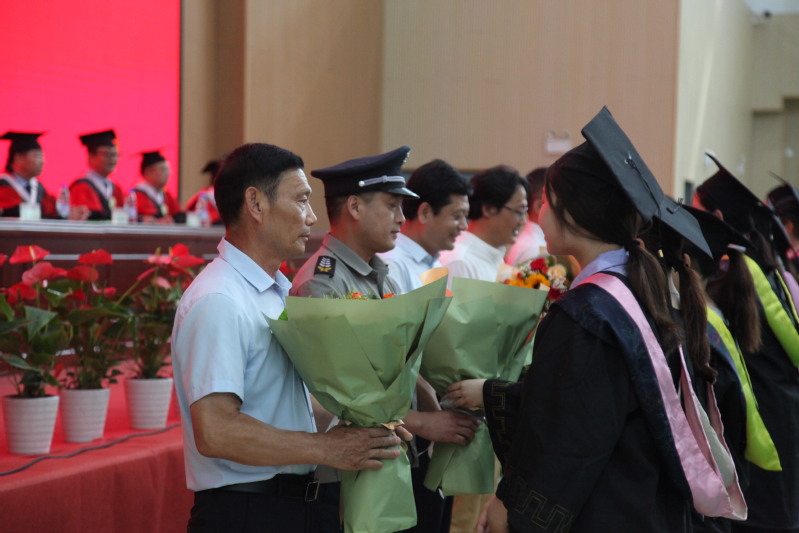 毕业生代表为教学、管理、服务战线的教职工代表敬献鲜花,感谢他们辛勤的劳动,感谢他们在求学生涯中的帮助和陪伴。