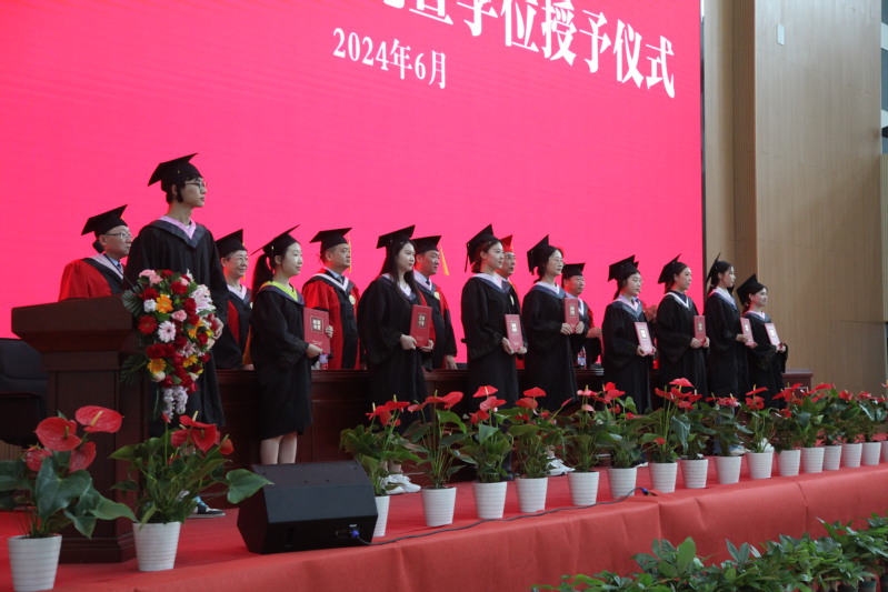 随后,举行了学位授予仪式,校领导为毕业生们拨穗加冕,颁发学位证书并合影留念,送上对每一位同学的祝福与期望,祝愿他们前程光明,未来可期!