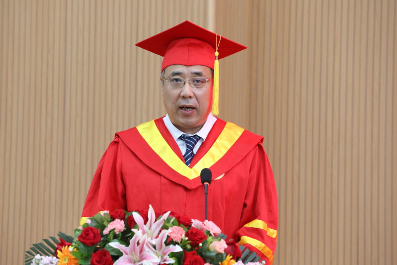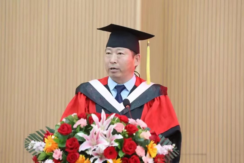 希望同学们以青春的激情、青春的奋斗、青春的力量,在这个充满无限可能的新时代去创造属于自己的精彩人生,在民族复兴、国家富强伟业中浓墨重彩地留下属于自己的青春华章!他为即将踏上全新征程的同学们送上四句话共勉:
