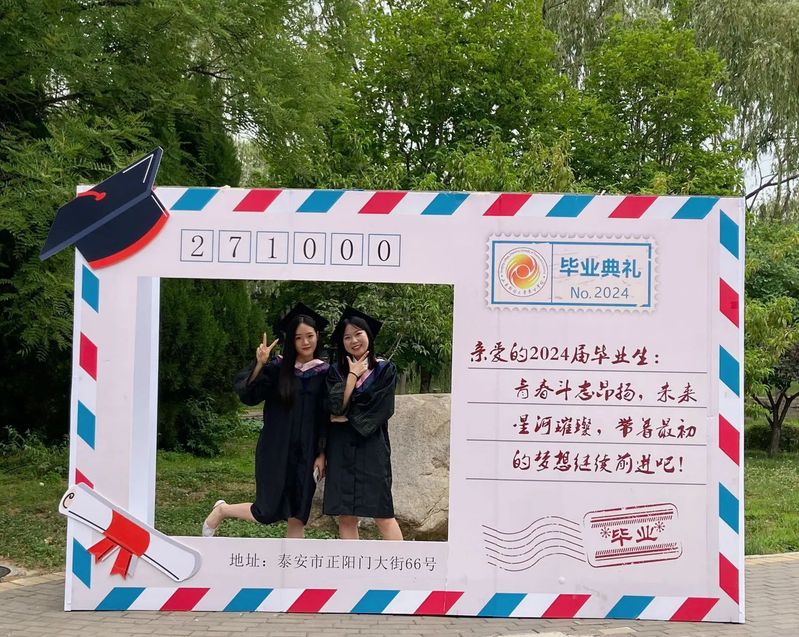 体育馆门口搭建起的红色拱门、铺设的红毯,洋溢着热烈的毕业气息;校园内各种各样的美陈,吸引了毕业生及其亲友频频打卡、合影留念;校园内漫步,随处可见写满祝福的条幅,给学子们带来了满满的仪式感。愿常怀赤子之心,不畏前方风雨。愿此处道别,各自珍重,共同奔赴下一程山海!祝2024届毕业生一路生花、前程似锦!