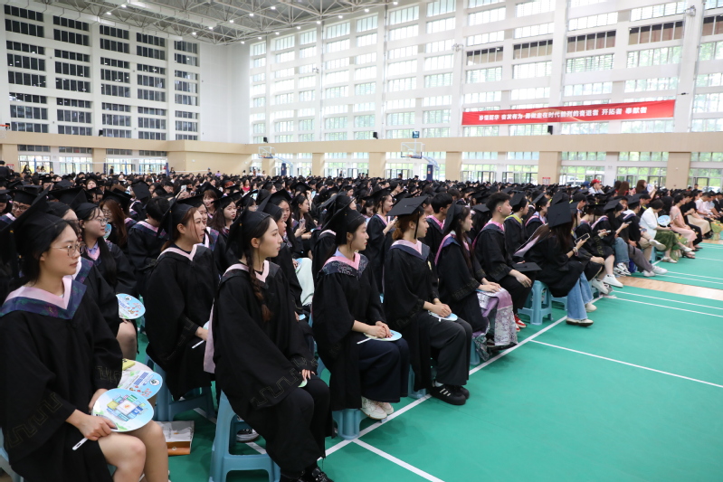 教师代表、人文艺术学院杨梦蕾老师发言。她希望同学们保持一颗谦虚的心,虚心向他人请教,勇于接受挑战和批评,不断提高自己的能力和素质;保持一颗感恩的心,感恩他人的帮助和支持,感恩社会的培养和关怀,用自己的行动去回报社会、回报他人;保持一颗热爱生活的心,珍惜每一个瞬间,用心去体验和感受生活中的美好和幸福。祝学生们前程似锦、事业有成!