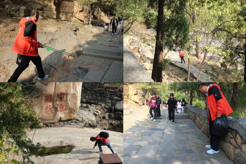 本次志愿活动分两路展开。第一小组主要任务是上山清理垃圾。志愿者们在泰山景区登山步道、游客休息区等区域清理游客丢弃的垃圾,维护景区环境整洁,同时向游客发放垃圾分类宣传册,讲解垃圾分类的意义和方法,提高游客的环保意识。