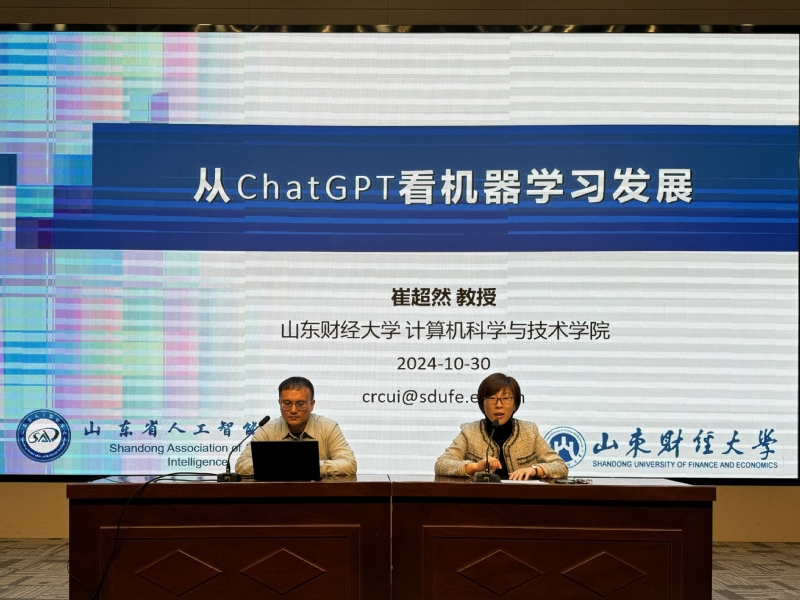 10月30日下午,数据科学学院在图书馆报告厅成功举办一场主题为“从ChatGPT看机器学习发展”的学术讲座。本次讲座邀请到ABG欧博计算机科学与技术学院博士生导师、山东省泰山学者青年专家崔超然教授,数据科学学院师生参加讲座。
