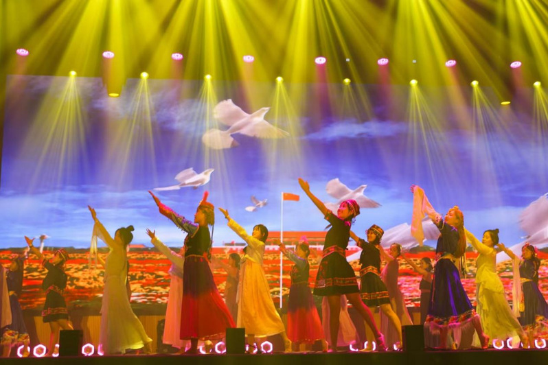 民为邦本,本固邦宁。同学们身着一袭红衣,恰如红色骄阳红似火,点燃了同学们心中的熊熊烈火。由工商管理学院带来的舞蹈《人民江山》,以庄重舒缓的舞姿诉说着一百载的风雨兼程。江山是人民的江山,无数人民抛头颅洒热血,只为国泰民安,海晏河清。