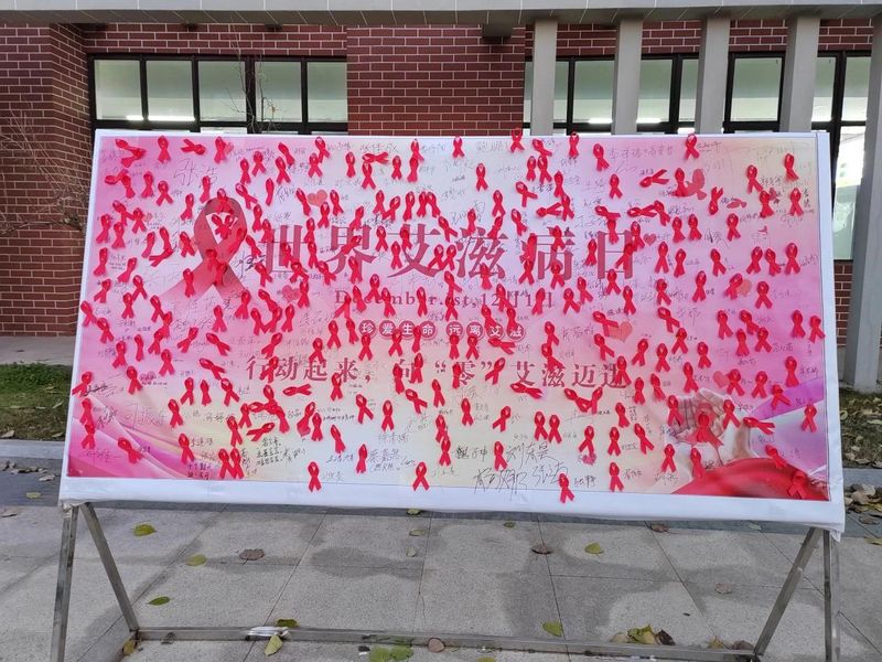 知识问答环节吸引了大量师生参与,大家积极回答关于艾滋病传播、预防的各类问题,在轻松愉快的氛围中加深了对艾滋病相关知识的理解;签名倡议环节中,师生们在展板签名,承诺积极宣传艾滋病预防知识,共同营造健康、安全的校园环境;粘贴红丝带活动则别具温情,红丝带作为艾滋病防治的象征,寓意着关爱、支持与希望。师生们手持红丝带,认真而庄重地将其粘贴在展板上,每一张红丝带都承载着大家对预防艾滋病工作的支持与承诺。