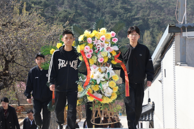 9点30分,师生在徂徕山烈士陵园向革命烈士们敬献花篮。关心下一代工作委员会副主任丁连第与辅导员唐子喻缓步上前,轻轻整理花篮上的缎带。全体师生向烈士陵园三鞠躬,瞻仰烈士墓,深切缅怀革命先烈的丰功伟绩,寄托无限哀思。