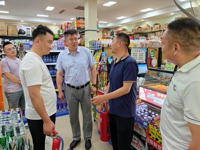 检查首先从学校商业街展开,宋凯明一行详细查看商铺消防通道是否畅通、灭火器材是否完好有效,并针对部分商铺杂物堆放问题现场提出整改要求。随后,检查组深入食堂后厨,重点检查燃气设备安全、油烟管道清理记录及应急疏散预案落实情况,要求食堂严格规范操作流程,杜绝火灾隐患。此外,检查组还对学生宿舍用电安全、教学楼消防设施运行等情况进行了全面排查,确保消防栓、应急照明等设备功能正常。