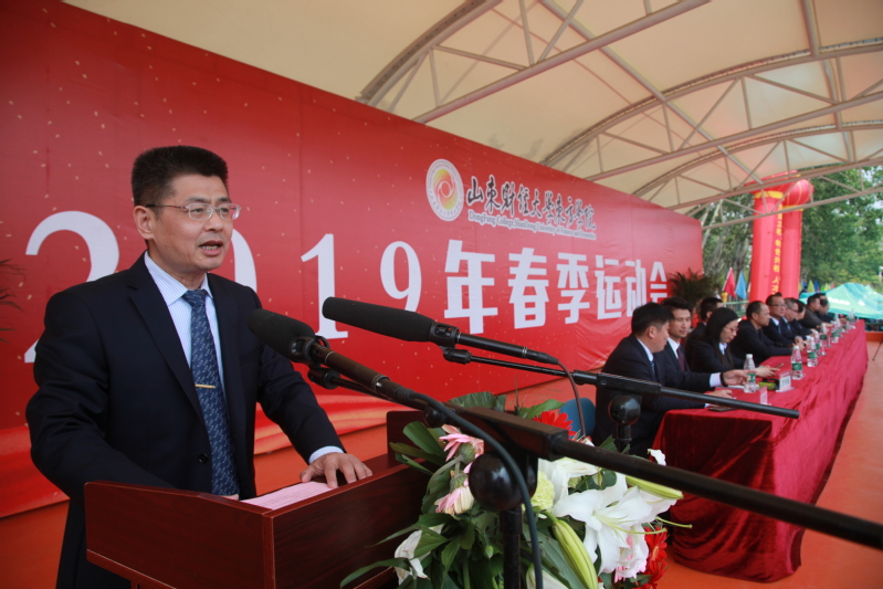 他指出,本届春季田径运动会,是在喜迎新中国成立70周年、全面落实全国教育大会精神,推进学校十三五发展规划落实、加快建设高水平应用型大学新形势下召开的一次盛会。习近平总书记指出:要树立健康第一的教育理念,开齐开足体育课,帮助学生在体育锻炼中享受乐趣、增强体质、健全人格、锤炼意志。科学的基础是健康的身体,只有运动才能敲开永生的大门。实现中华民族伟大复兴的中国梦,需要政治坚定、体魄健全、素质一流的德智体美劳全面发展的建设者和接班人。希望每一位同学以参加阳光体育运动和春季运动会为契机,通过广泛的群众性竞技运动,掌握体育与健康的基本知识和技能,坚持五育并举、全面发展,弘扬“博学明志,厚德笃行”的校魂精神,成为德智体美劳全面发展的高素质人才。希望全体师生把“更快、更高、更强”的体育精神发扬到学习和工作生活中去,做到体育锻炼日常化、阳光运动终身化,在运动中寻找快乐,在运动中寻找自信,在运动中寻找幸福,让高尚的道德、勤学的氛围、合作的精神和顽强的意志,成为我们成就事业的根基、人生快乐的源泉,成为我们建设高水平应用型大学的坚强动力!
