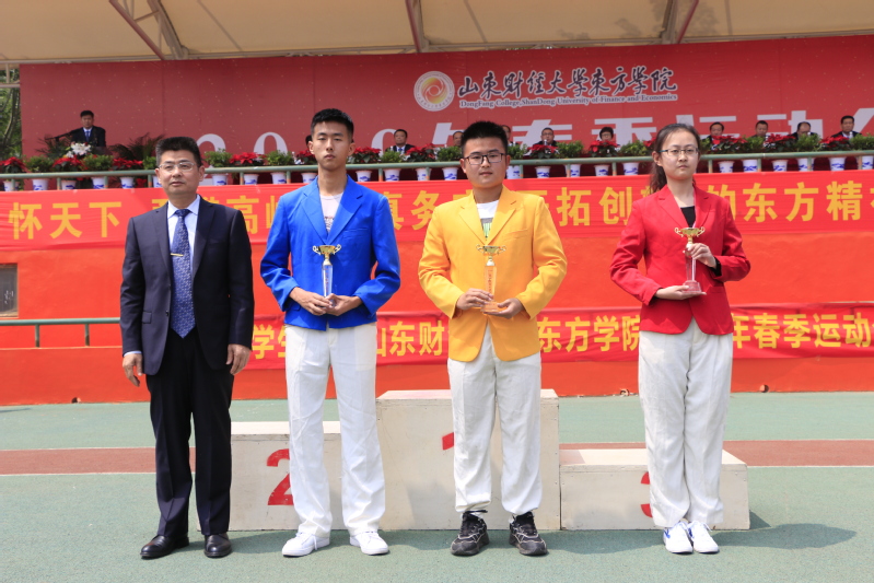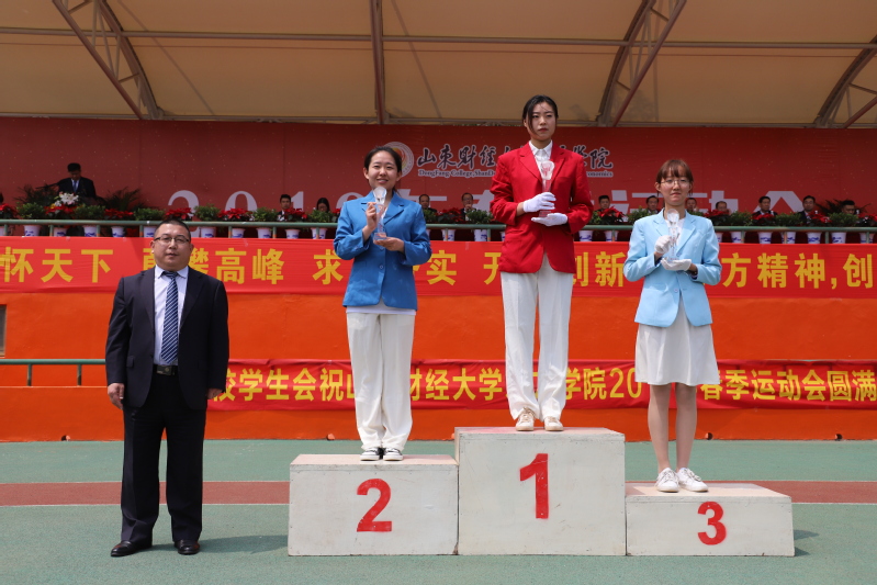 运动会副总裁判长、公共管理学院副院长郭书胜宣布团体比赛成绩;大会精神文明评委会主任、学生工作处处长王伟宣布精神文明奖、优秀组织奖、啦啦操比赛获奖单位名单。