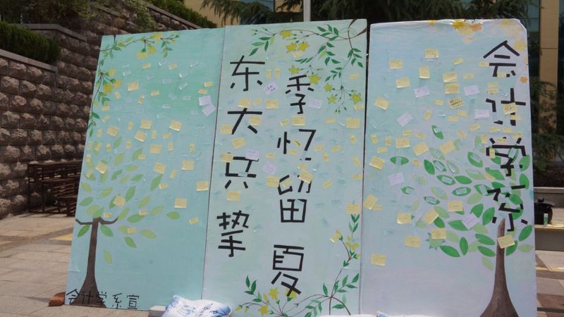 为了给在校学生与毕业生提供一个学习交流的平台,让毕业生感受到母校浓浓的关爱之情,会计学系于6月2日上午10点在东方广场举办了“毕业留言”的祝福活动。