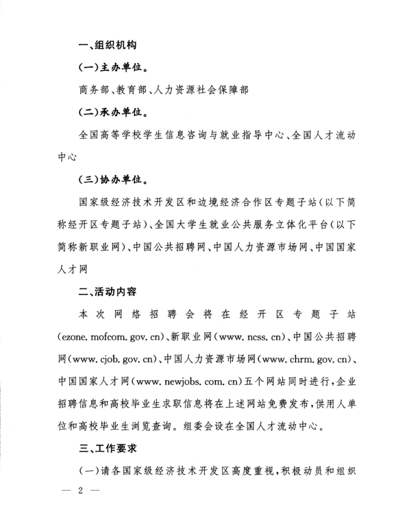 关于举办2019年全国国家级经济技术开发区高校毕业生网络招聘会活动的通知