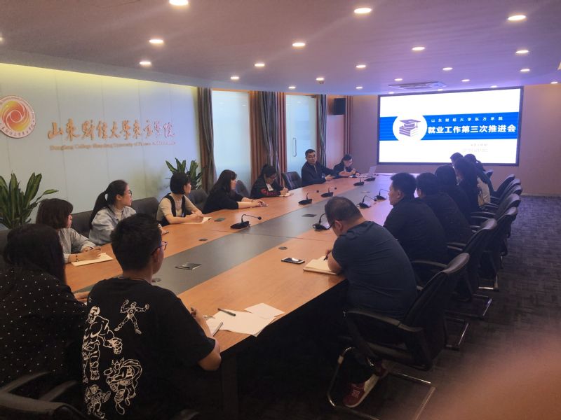 会议首先通报了各学院截止 5 月 8 日的就业情况。就业指导中心王栋老师提出距离 2019 届毕业生离校只有一月余,时间紧迫,各学院要进一步加强对毕业生的签约指导,重点关注困难家庭毕业生就业,做到一对一就业指导,为有就业需求的及时提供就业信息;在收取相关证明材料时应严格按照山东省人力资源和社会保障厅要求对毕业生上报的就业材料及时逐一核查,确保全面核查无误,防止毕业生开具虚假证明材料。严格按照教育部 “四不准”要求,不准以各种方式强迫毕业生签订就业协议和劳动合同;不准将毕业证书、学位证书发放与毕业生签约挂钩;不准以户档托管为由劝说毕业生签订虚假就业协议;不准将毕业生顶岗实习、见习证明材料作为就业证明材料。会上操作、演示了信息网系统内升学毕业生的信息录入详细流程,确保考取研究生毕业生信息准确录入信息网系统。同时宣读《2019 届毕业生就业意向及需求调查问卷》数据统计结果,解读了我校 2019 届毕业生的就业意向及需求。最后公布了我校就业指导中心微信公众号,要求各学院转发给毕业生并积极关注,公众号每天会更新招聘信息、就业指导、政策法规、通知公告等信息,以更好地服务毕业生。
