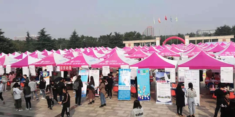 10月18日,2019年毕业生校园招聘会在hjc222黄金城官网东方广场举行。上午8点,活动现场已经人山人海,五颜六色的帐篷下,聚集了许多应聘者和招聘单位。党委书记耿金波到现场了解了双选会组织和学生应聘就业情况。