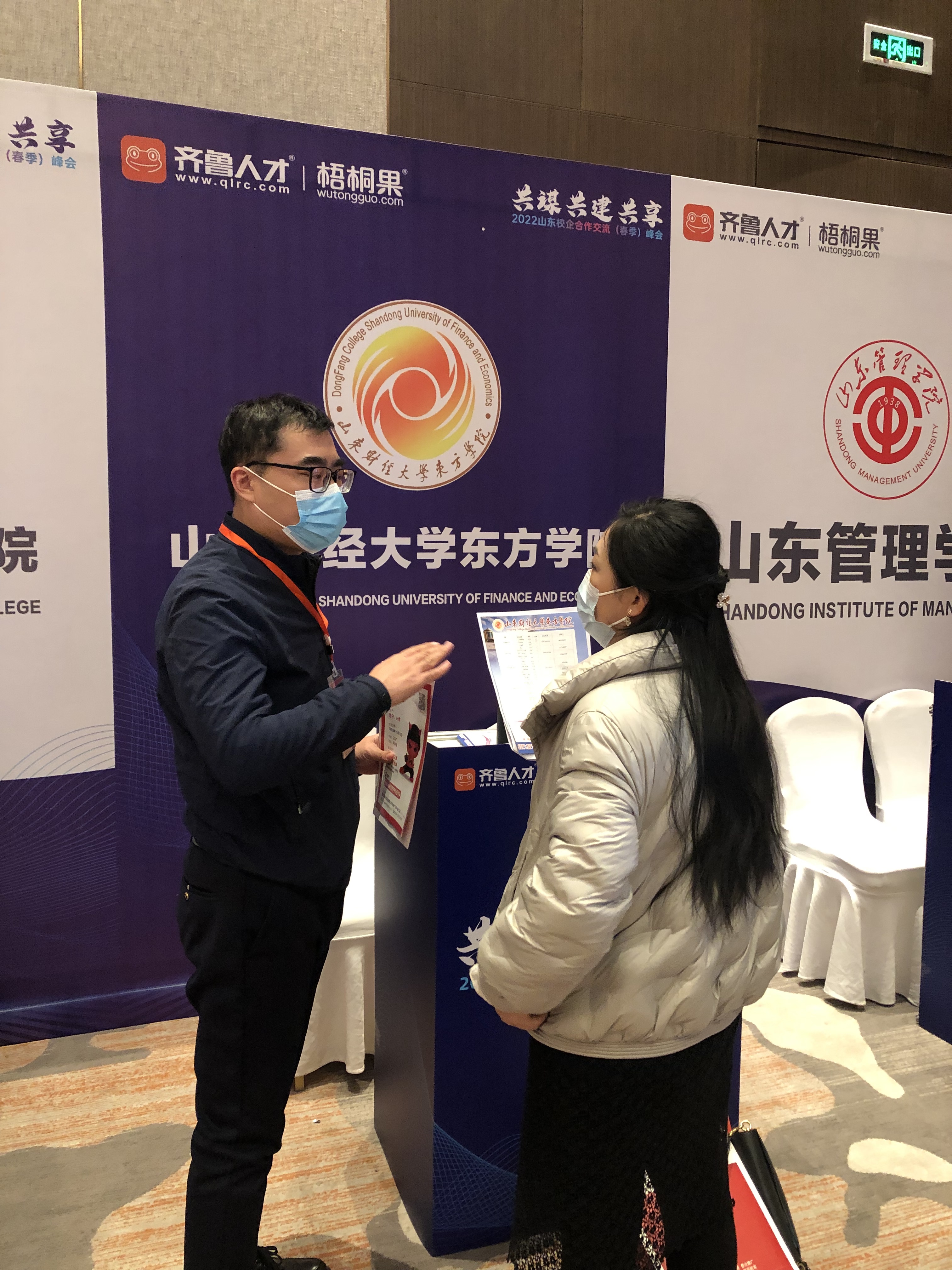 3月4日,我校就业指导中心老师应邀参加,由山东人才发展集团、济南市人力资源和社会保障局指导,齐鲁人才、梧桐果主办的“共谋 共建 共享——2022山东校企合作交流(春季)峰会”。