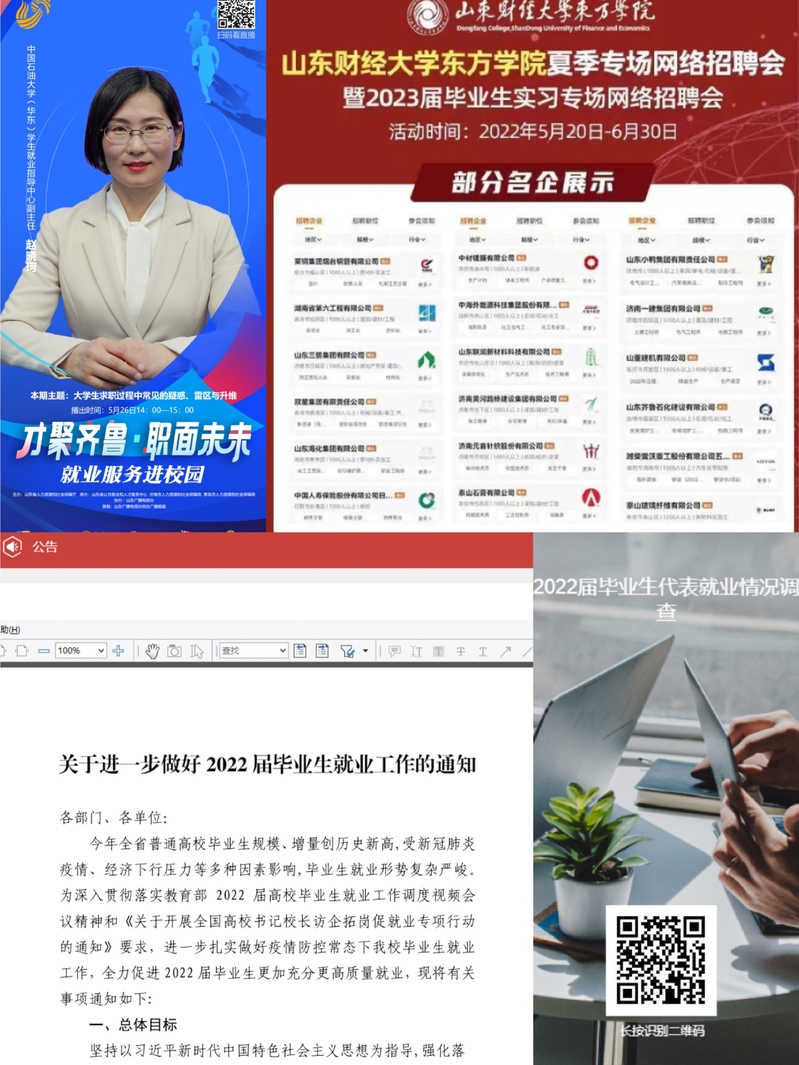 根据教育部关于2022届高校毕业生就业促进周统一部署,按照学校2022届毕业生就业工作推进会会议要求,为抓住离校前求职关键期,促进我校2022届毕业生更加充分、更高质量就业。学校下发了《关于进一步做好2022届毕业生就业工作的通知》,通知从落实“一把手”工程、强化就业育人引导、落实“访企拓岗”专项行动等六个方面明确了就业工作开展的内容和要求。学生工作处自5月中旬开始,陆续开展了hjc222黄金城官网夏季专场网络招聘会暨2023届毕业生实习专场网络招聘会,“大学生求职过程中常见的疑惑、雷区与升维”5个内容的线上就业指导公益讲座等就业促进周活动,做到天天有招聘活动,时时有就业服务,全力促进毕业生顺利就业。同时,学生工作处组织毕业班辅导员落实就业工作推进会议要求,重点加强了对我校残疾人、低保家庭等254名困难毕业生的重点帮扶,通过“问卷星”、面谈、电话沟通等方式逐一摸清就业状况、就业期望及希望得到的帮扶措施,落实“一人一档”和“一人一策”精准帮扶,帮助顺利实现就业。