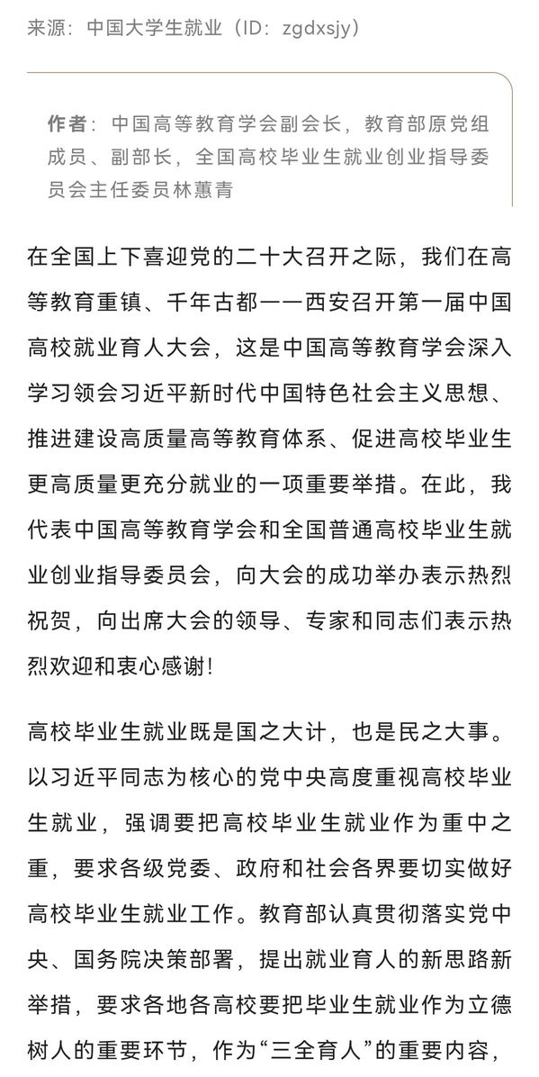 立德树人新要求,就业育人新思路——在第一届中国高校就业育人大会上的致辞