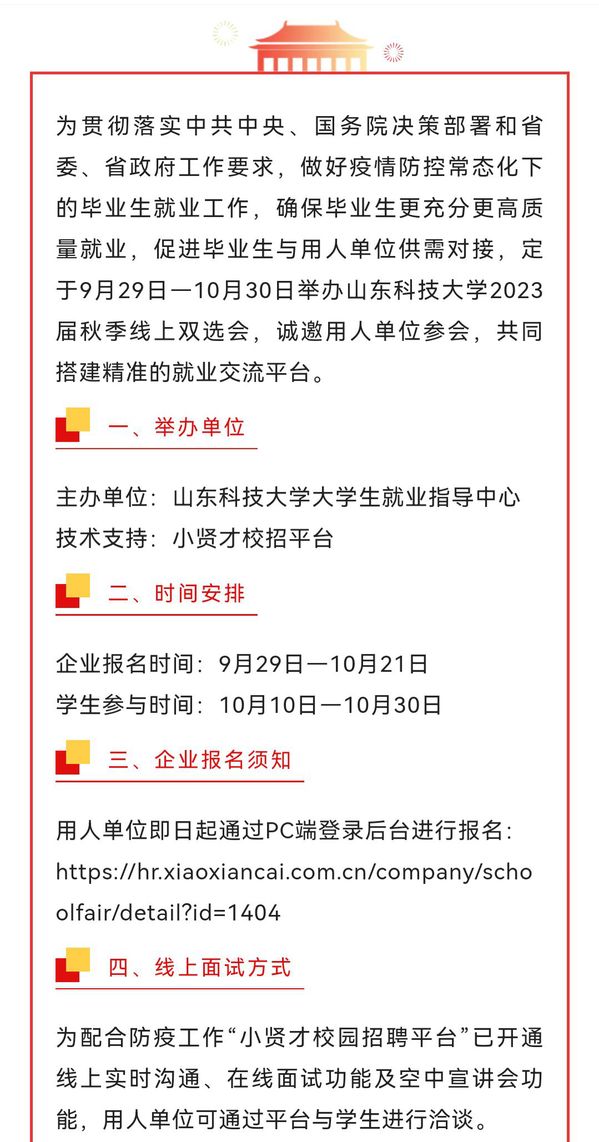 线上双选 | 山东科技大学2023届秋季线上双选会