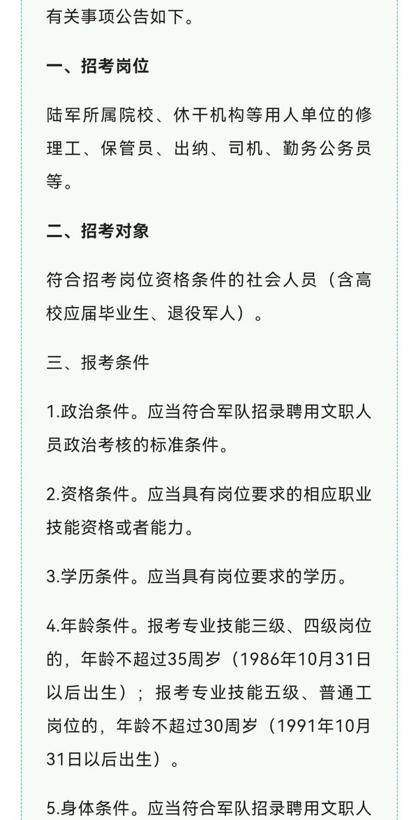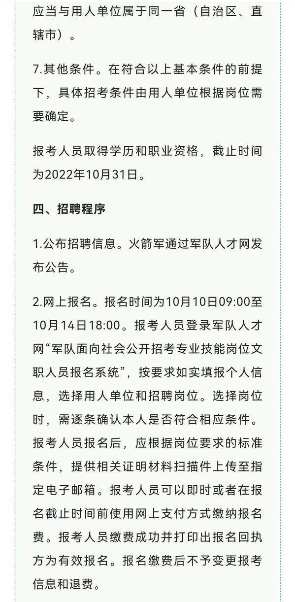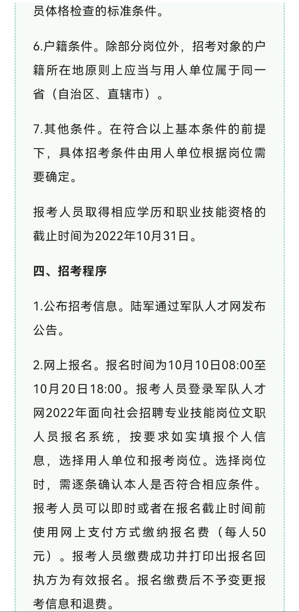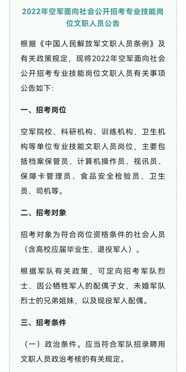 2022年军队招考专业技能岗位文职人员报名开启!