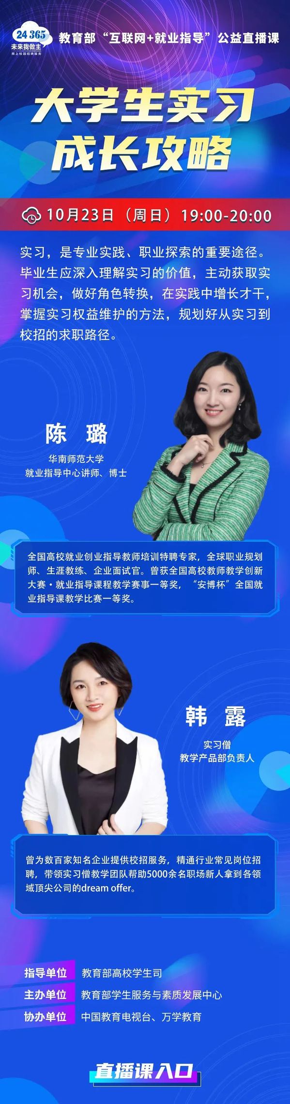 课程预告 | 教育部24365就业公益直播课:大学生实习成长攻略