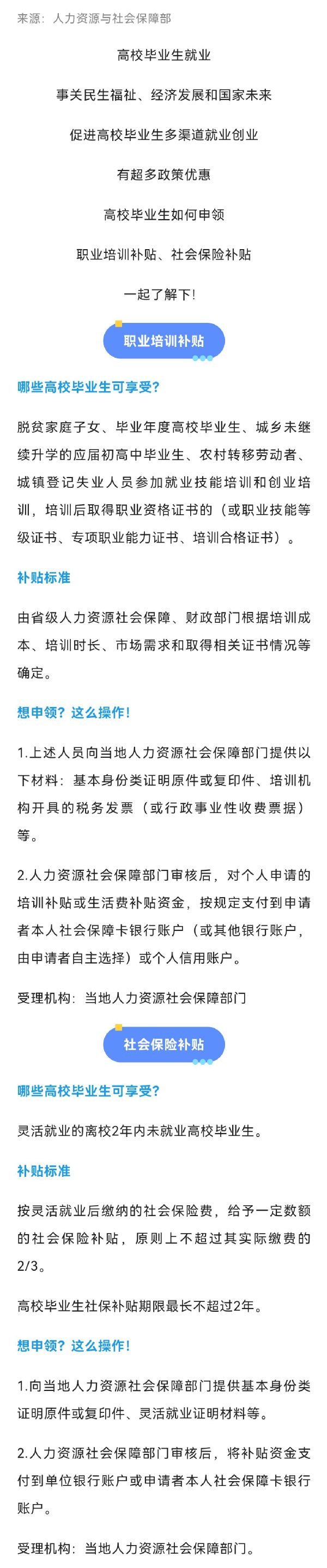 高校毕业生就业创业可领这些补贴!