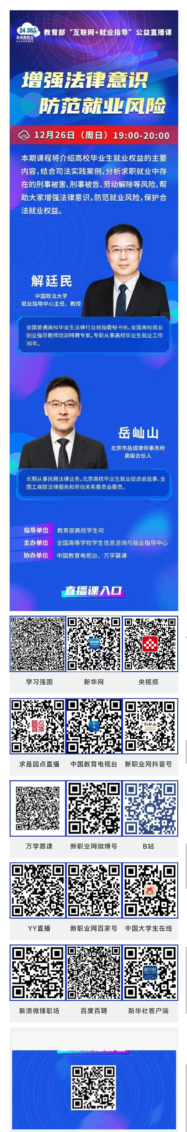公益直播课:增强法律意识 防范就业风险