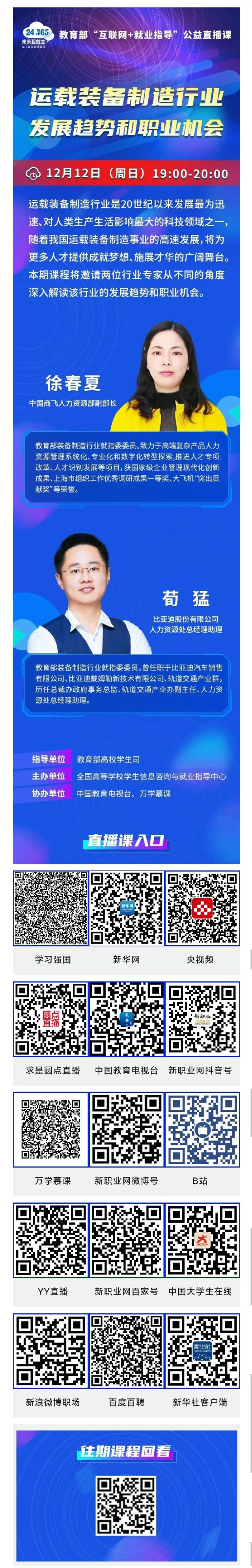 公益直播课:运载装备制造行业发展趋势和职业机会