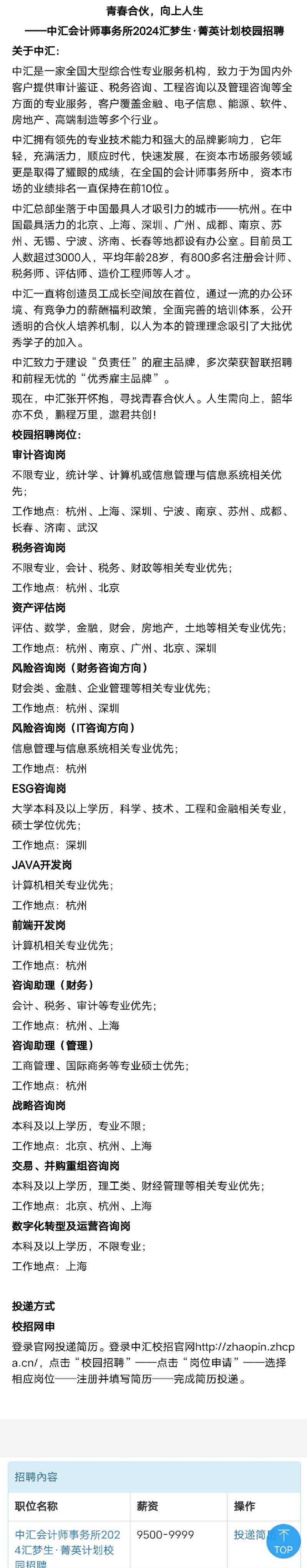 招聘|青春合伙,向上人生——中汇会计师事务所2024汇梦生·菁英计划校园招聘