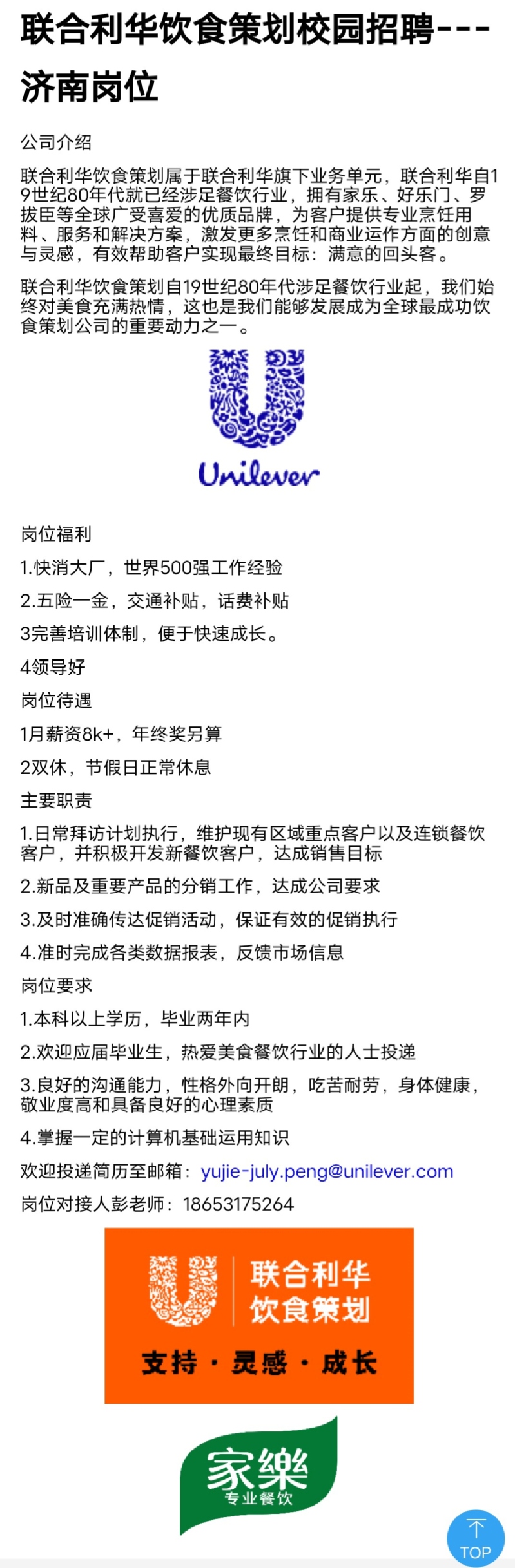 招聘|联合利华饮食策划校园招聘