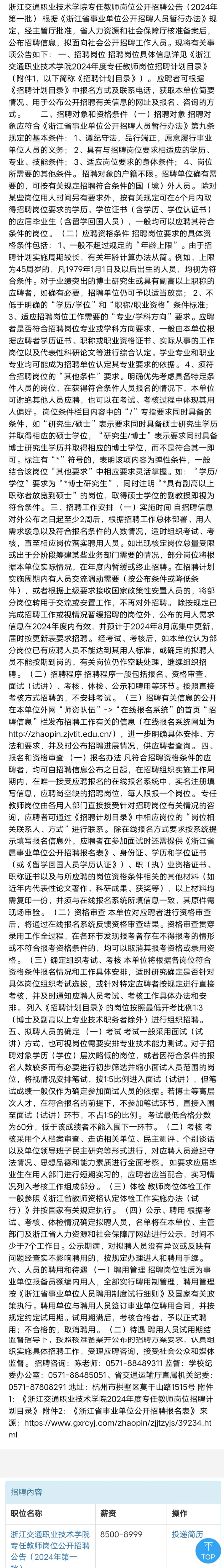 招聘|浙江交通职业技术学院专任教师岗位公开招聘公告(2024年第一批)