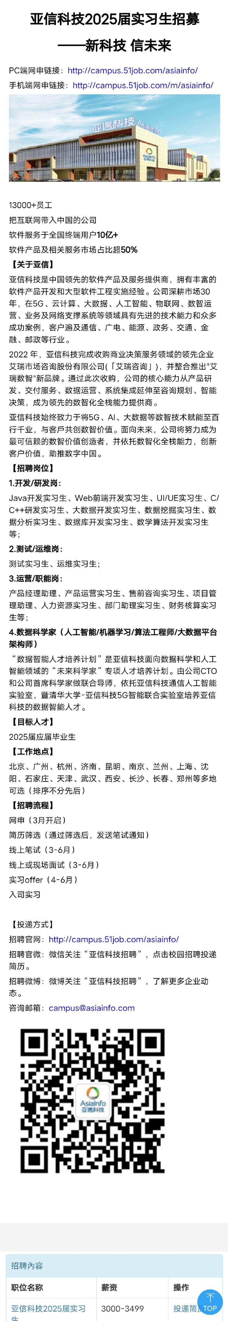 招聘|亚信科技2025届实习生招募 ——新科技 信未来