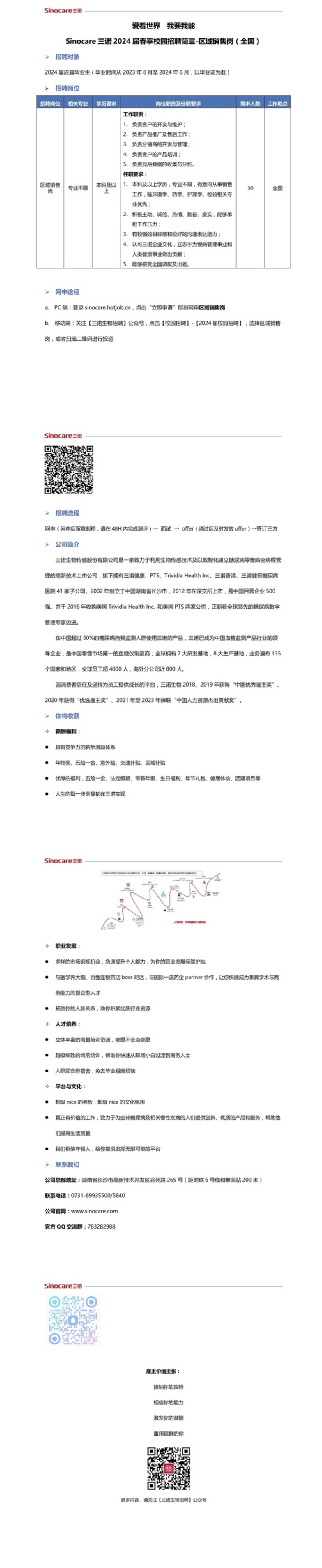 招聘 三诺生物传感股份有限公司2024年区域销售岗