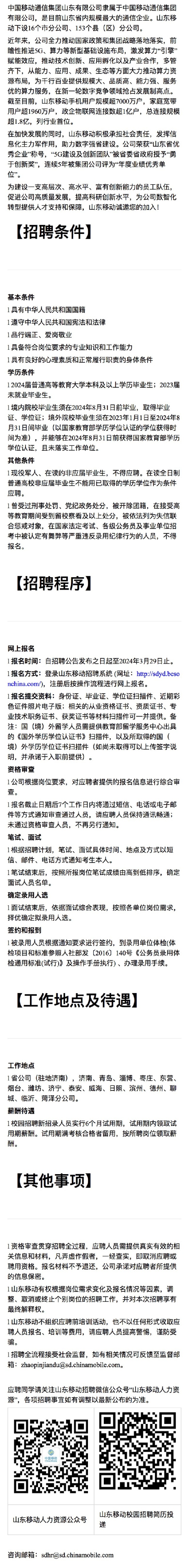 招聘 山东移动2024年春季校园招聘