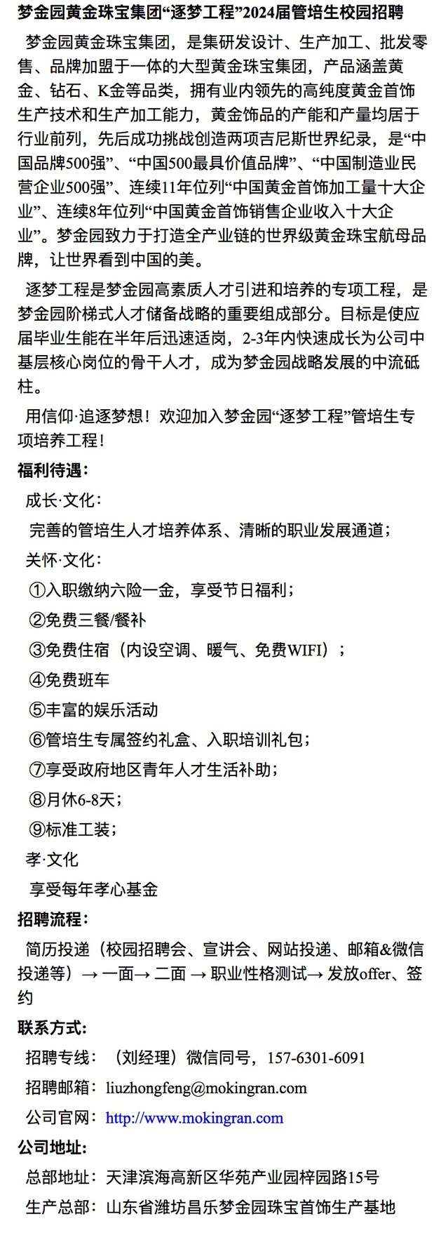 招聘 山东梦金园珠宝首饰有限公司