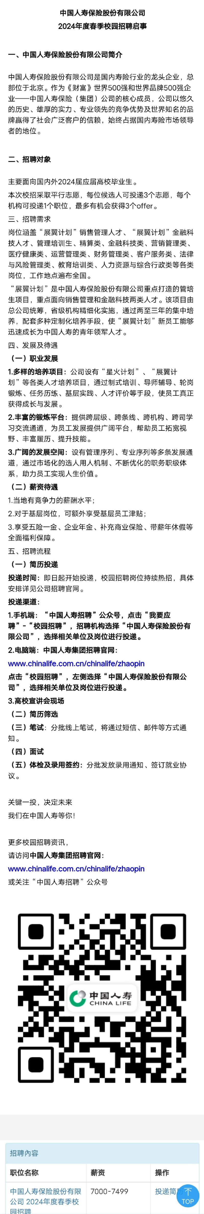 招聘|中国人寿保险股份有限公司 2024年度春季校园招聘启事