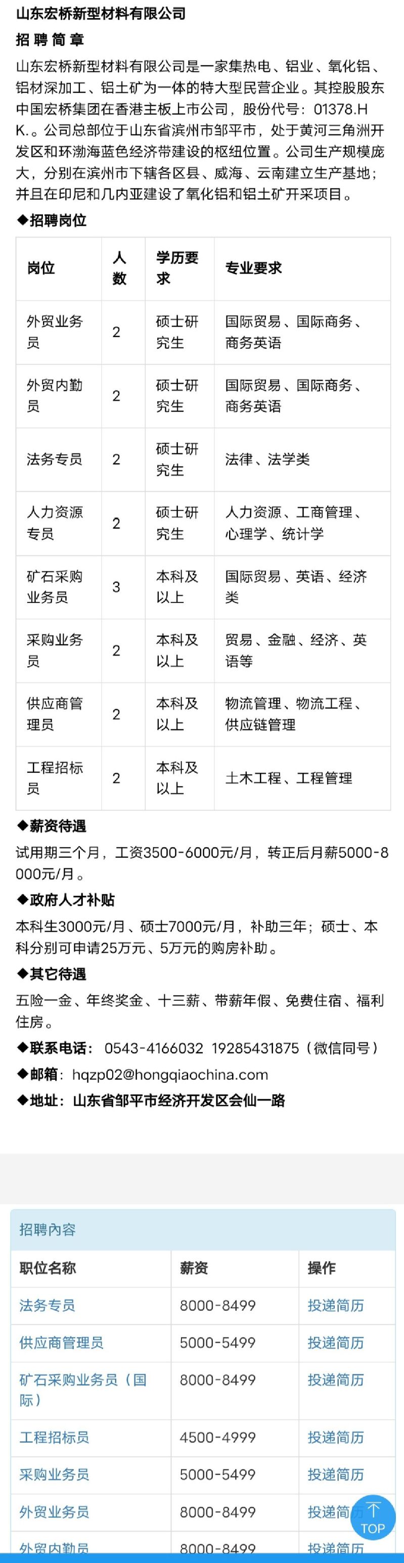 招聘|山东宏桥新型材料有限公司职能类岗位招聘