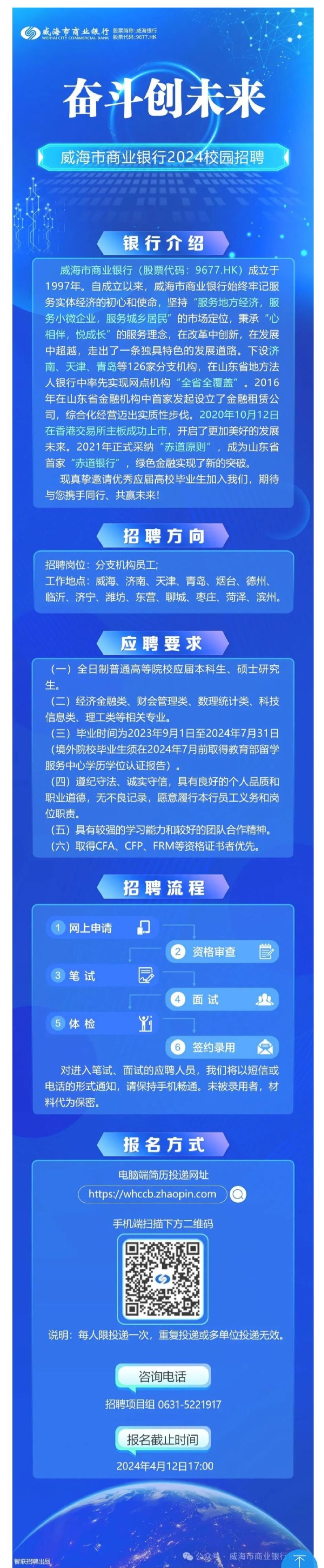 招聘|威海市商业银行2024春季校园招聘正式启动!
